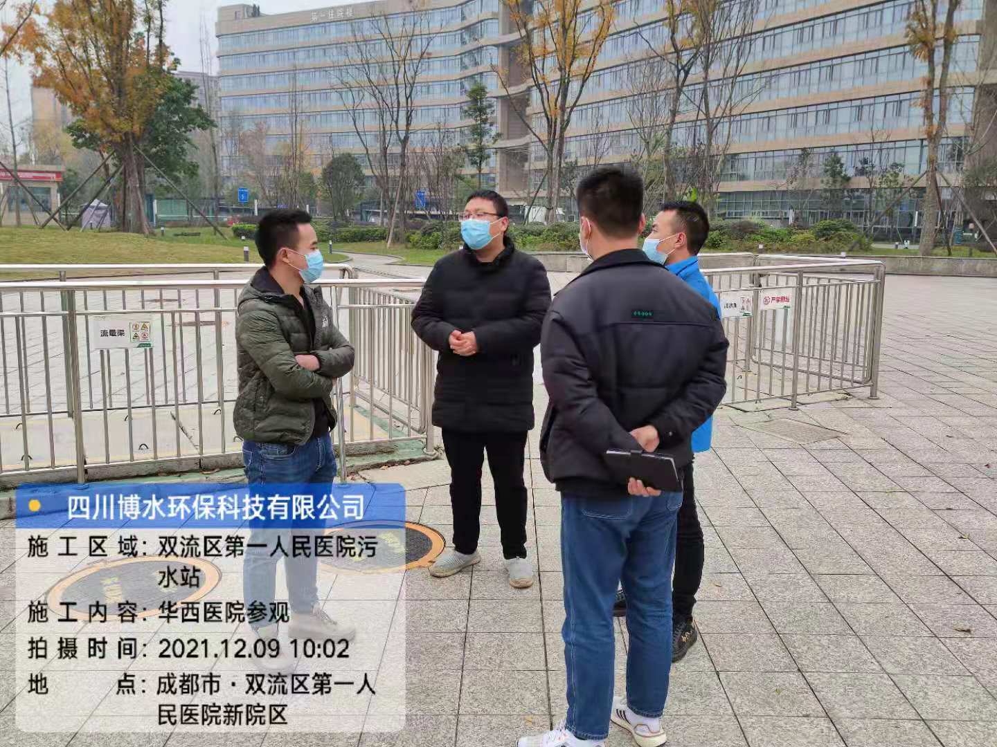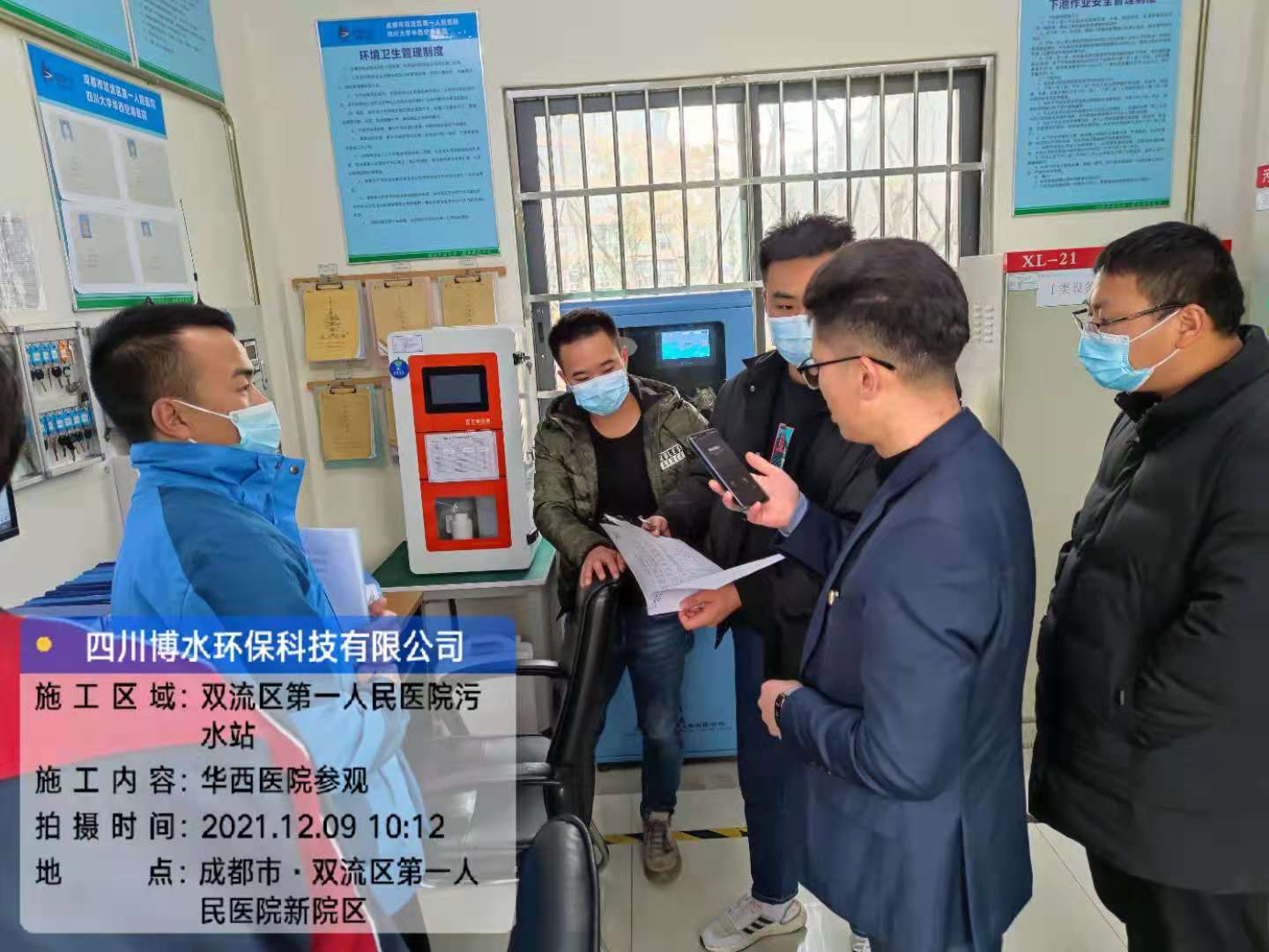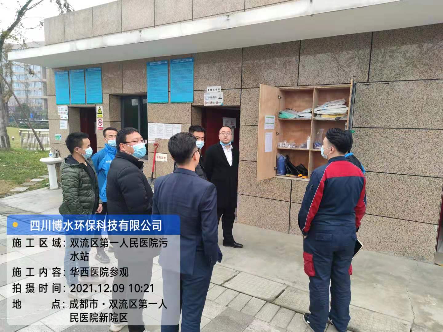 2021年12月9日上午,四川華西醫(yī)院天府院區(qū)領(lǐng)導(dǎo)組及中航物業(yè)相關(guān)領(lǐng)導(dǎo),考察我公司在華西雙流空港醫(yī)院污水處理站運(yùn)營情況。