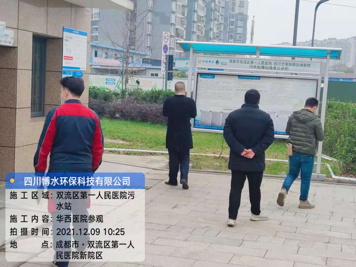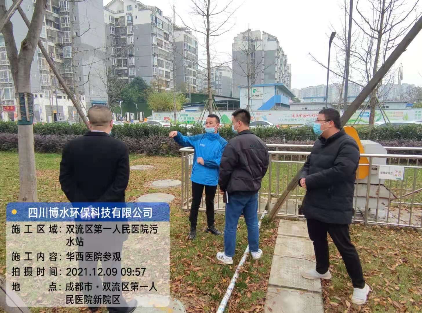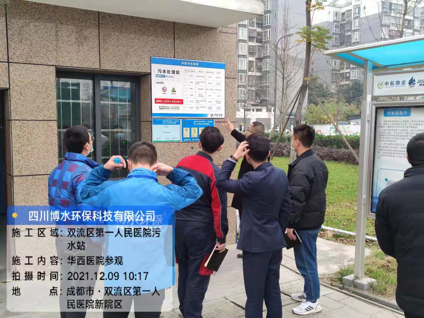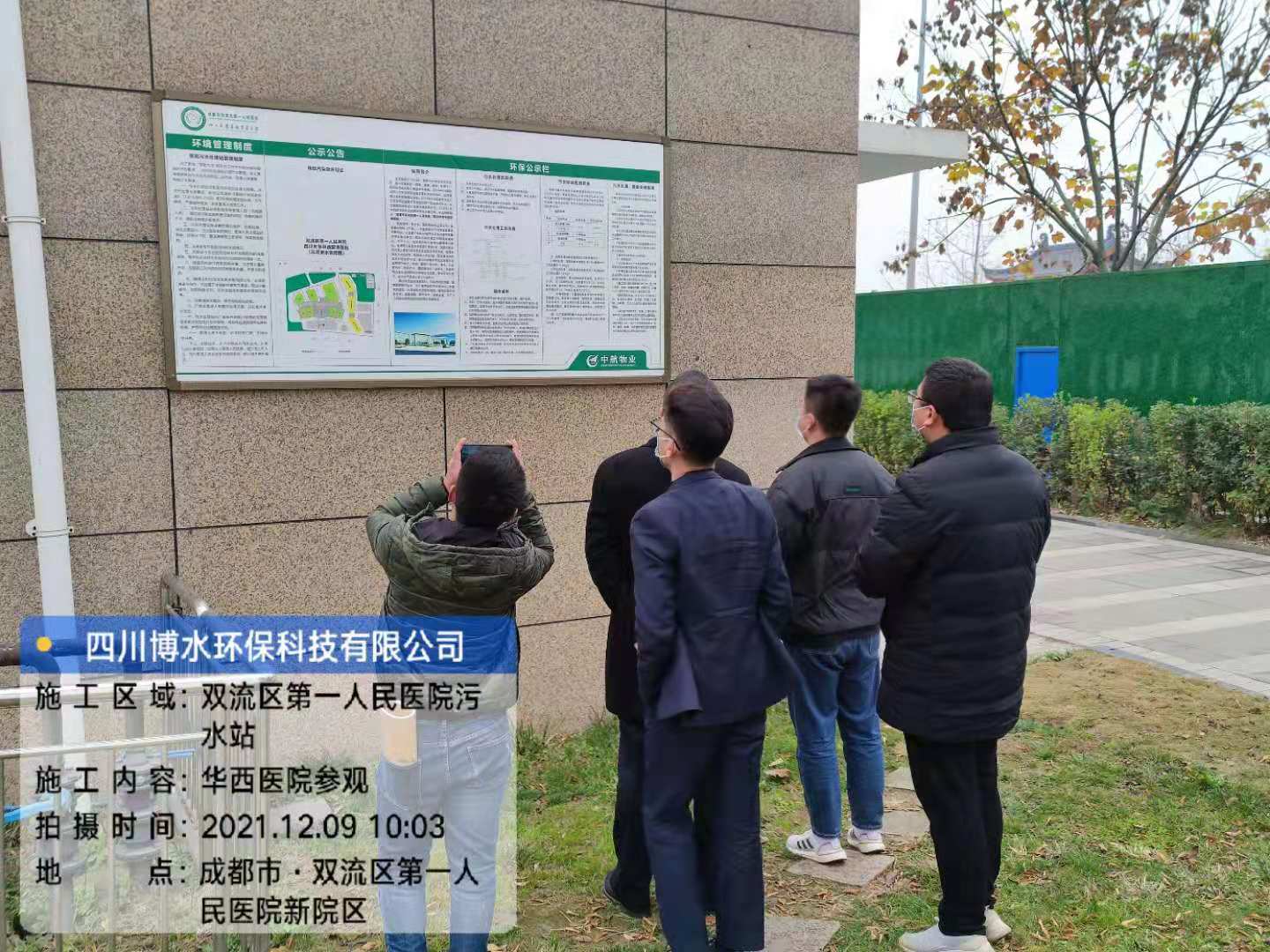 2021年12月9日上午,四川華西醫(yī)院天府院區(qū)領(lǐng)導(dǎo)組及中航物業(yè)相關(guān)領(lǐng)導(dǎo),考察我公司在華西雙流空港醫(yī)院污水處理站運(yùn)營情況。