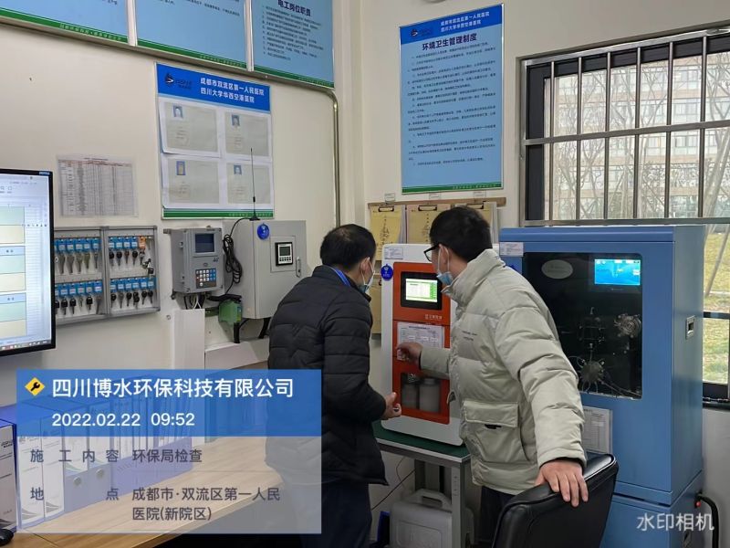 2022年2月21日-23日,環保局臨檢四川博水環保運維項目:雙流區第一人民醫院(新院區)!