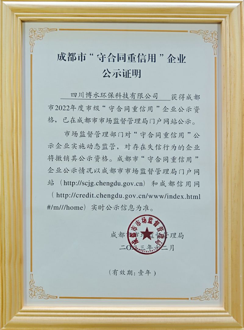 榮獲: 成都市“守合同重信用”企業(yè)