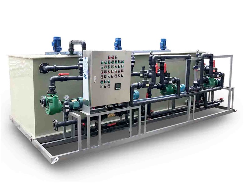 加藥裝置根據所需藥劑濃度,在溶藥箱內配制,經攪拌器攪拌均勻后投入加藥箱、用磁力泵(加藥泵)向投藥點或指定的系統中輸送所配制的溶液。成套加藥裝置具有結構緊湊、安全簡單、操作使用簡便等特點。該裝置還可根據用戶不同工藝流程的要求,進行有針對性的設計、配置必要的部件,經濟實用。