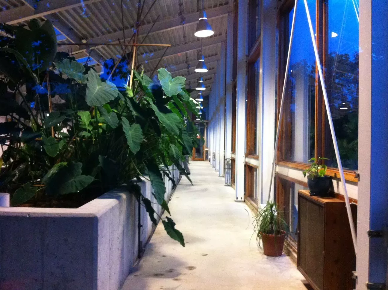 聽起來逼格很高?其實污水處理真沒有什么奧秘,其處理原理就很簡單。一開始,所有污物像人類排泄物和“灰水”例如廁所、洗手盆和淋浴等產生的廢水送入儲罐收集,然后輸送至生態機器。第二階段是用兩個18立方米的化糞池和缺氧池作為調節預處理,出入流水四個造濕地,內襯橡膠,堆滿碎石,利用依附在植物根系上的生物膜對污水作進一步凈化。據說此時污染物去除已達75%。第三階段是好氧曝氣池,一個多級食物鏈的生態系統,去除大部分的營養物。最后經循環砂濾后,廢水就已經變成符合標準的家庭用的清潔水源。這個生態機器是一個現代溫室構造,太陽光伏板供電,里邊還能用作瑜伽課室。