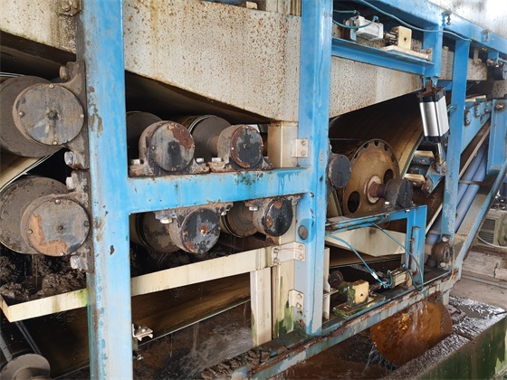 經重力楔形脫水、預壓、壓榨脫水成為泥餅,由卸泥裝置將泥餅卸除。