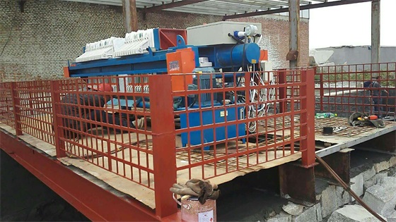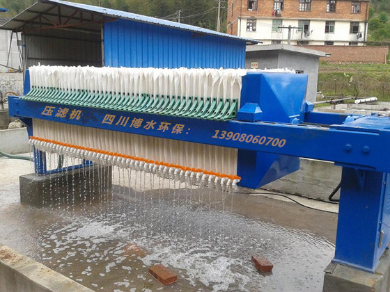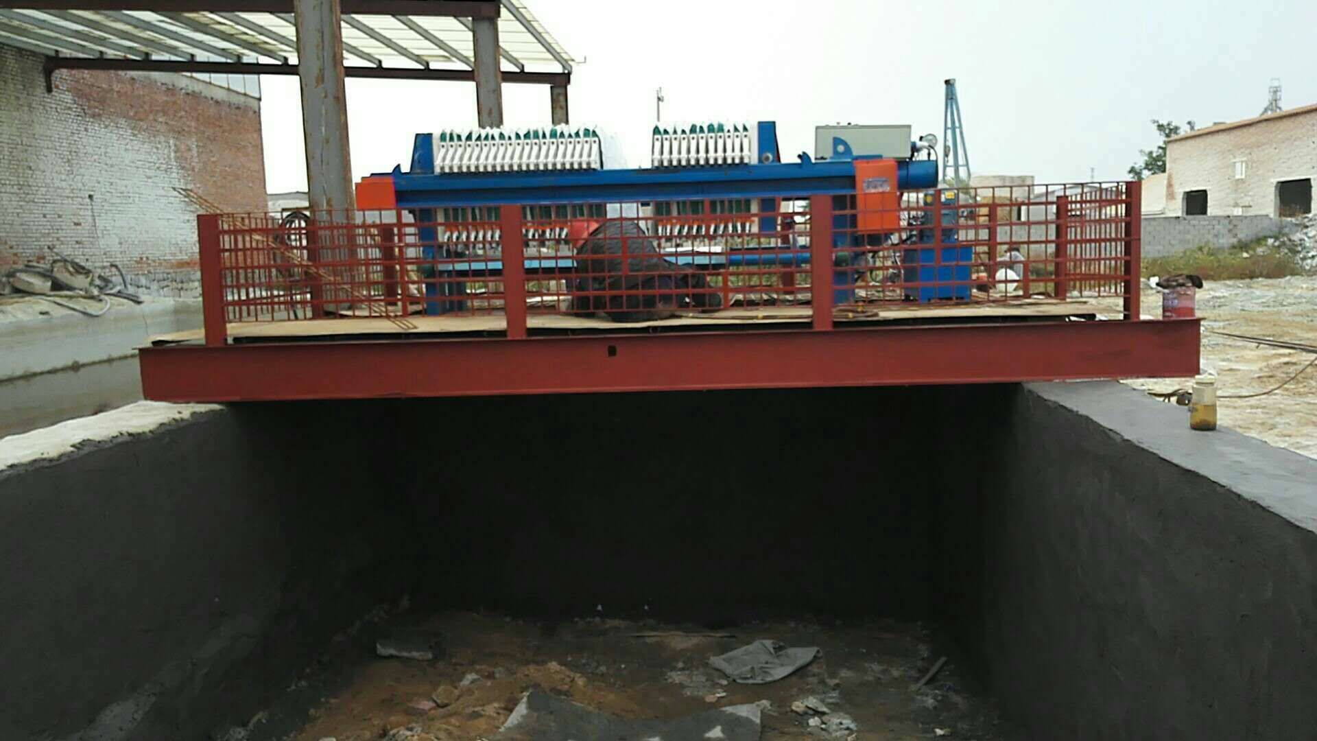 濾布裝在濾板的兩側,在壓緊裝置的作用下,濾板被壓緊在壓緊板和止推板之間,每兩塊兒濾板之間形成了一個封閉的過濾空間,